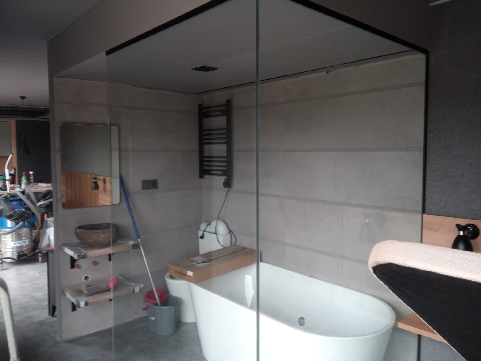 Baño de cristal trasparente